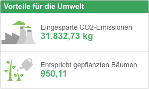 So haben wir mit Stand Anfang 2023 bereits über 30 Tonnen CO2 eingespart, dies entspricht einem Equivalent von ca. 950 gepflanzten Bäumen.